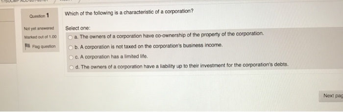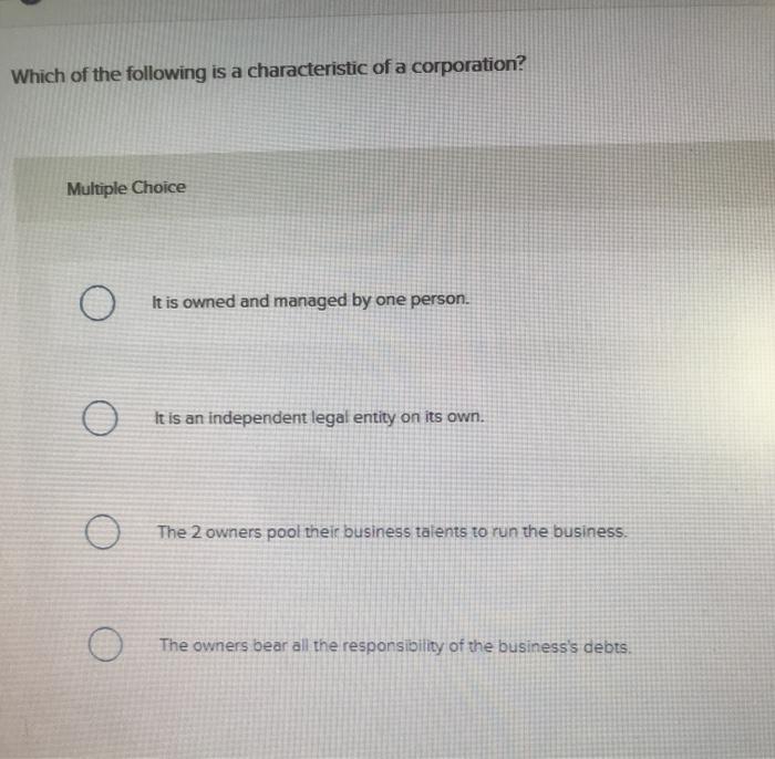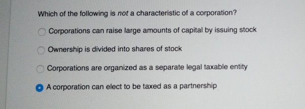 Up to 25 cash back Which of the following is not a characteristic of a corporation. Lets look at each of these in turn. Direct management by the shareholders owners c.